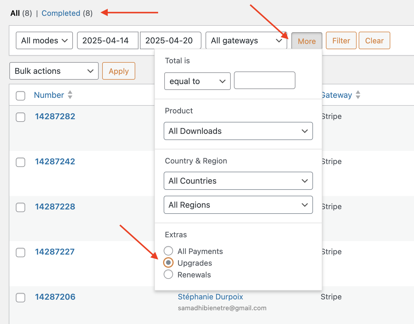 For upgrades, stay on the same screen and use the Filter. Filter by Upgrades