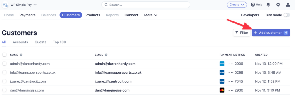 Click Add customer button