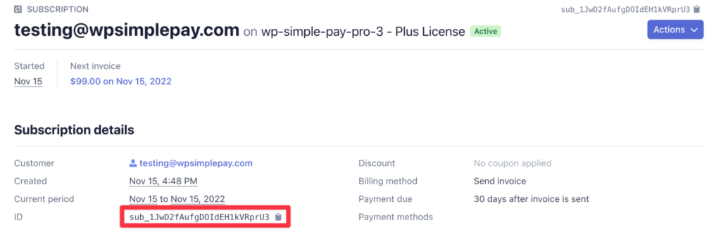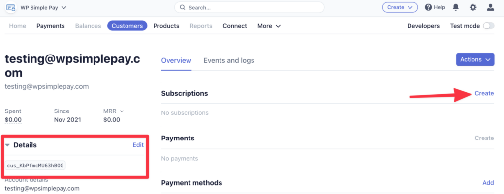 1. Click the link in Stripe to create a subscription for the newly created customer. This would also be a good time to copy and paste the customer ID, which starts with cus_ – you’ll need this later.