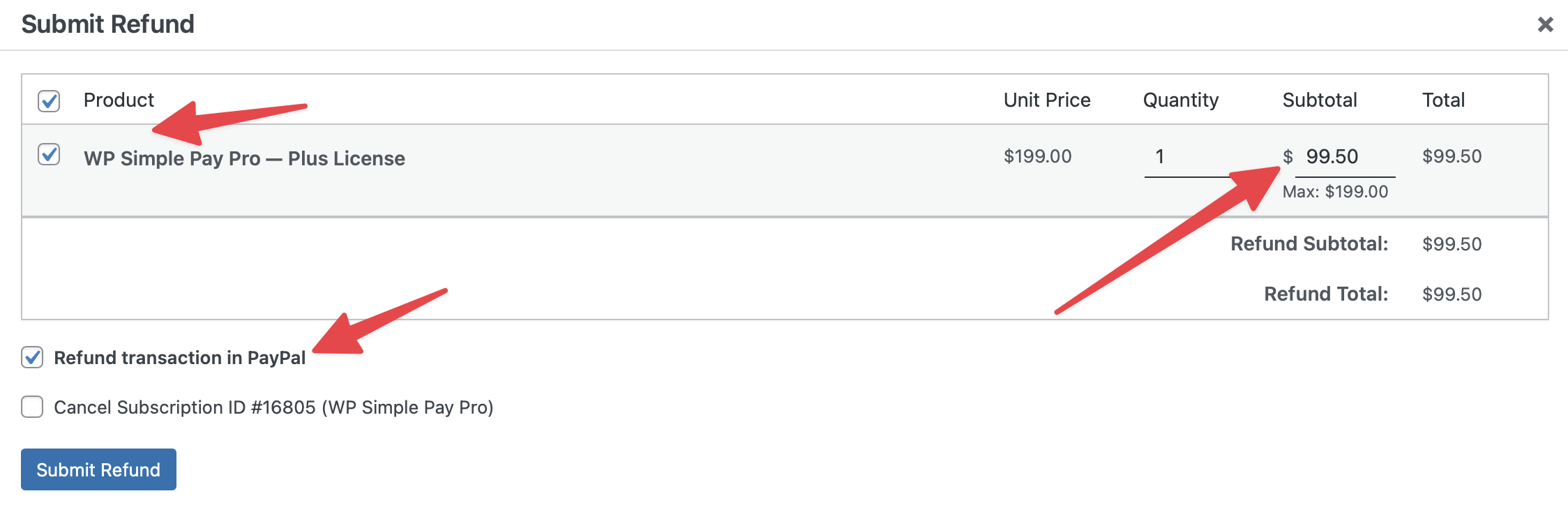 - Then click the “Submit Refund” button.