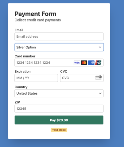 For instance, to return the text “Silver Option” in the form below